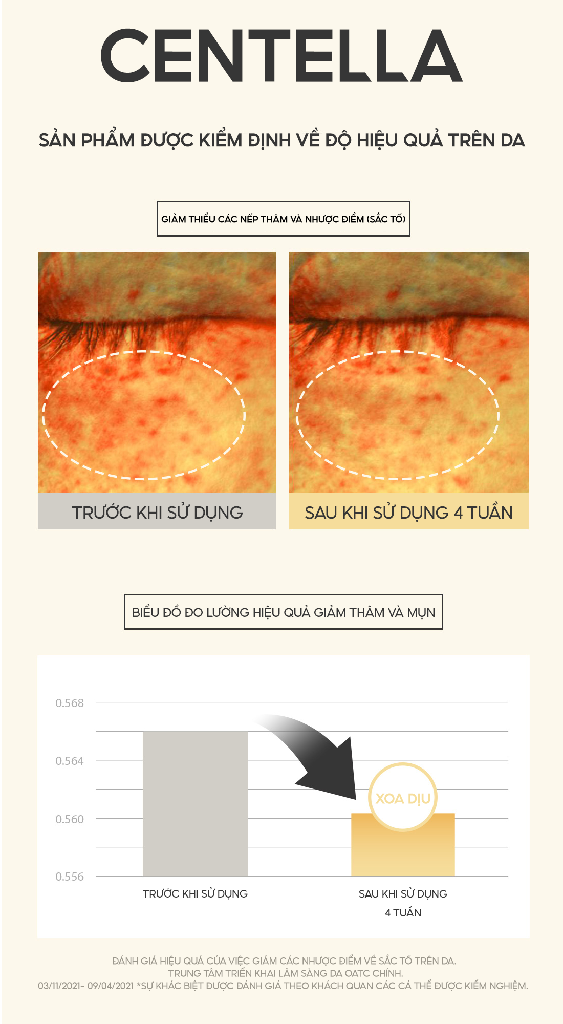 - Centella Asiatica Extract: Chiếm 50,568%, có tác dụng cấp nước, dưỡng ẩm, làm dịu da, phục hồi da nhạy cảm,