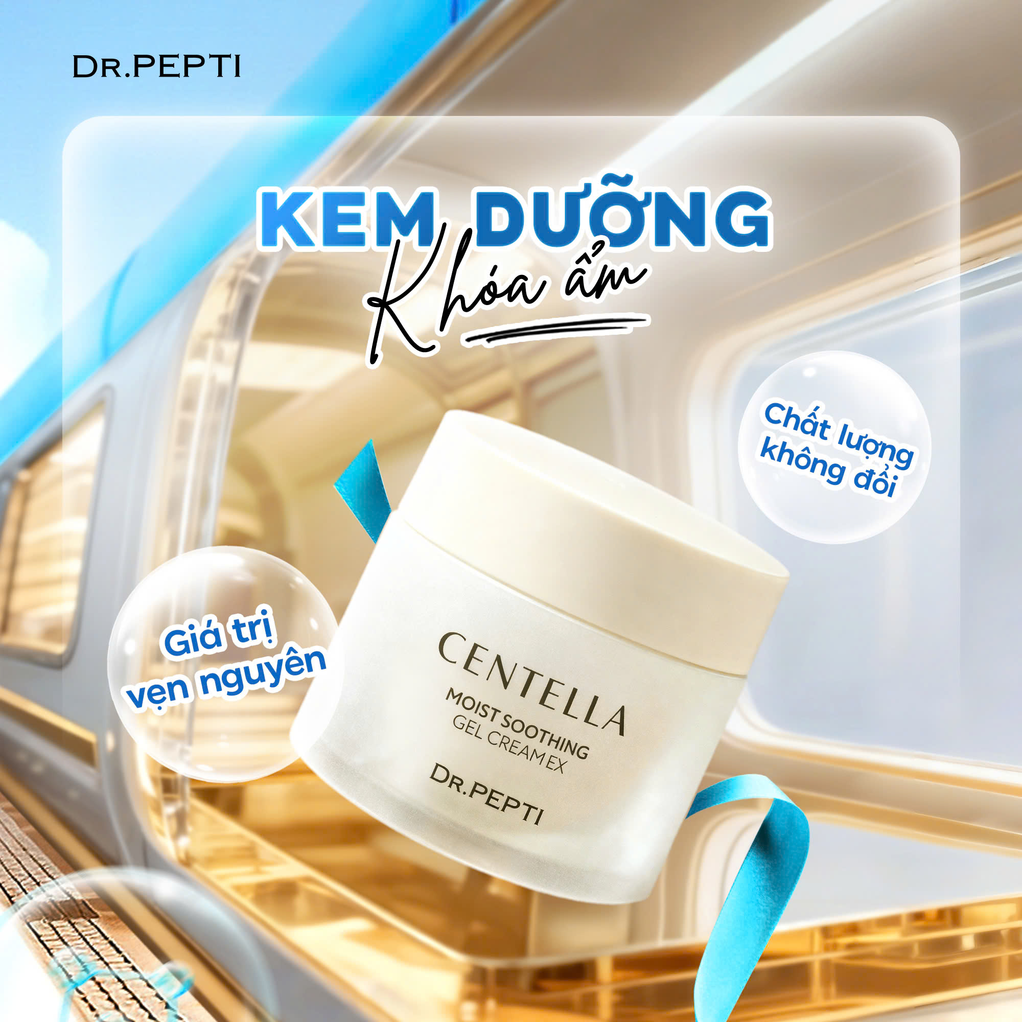 Nếu toner là bước làm mềm và dẫn truyền dưỡng chất, thì kem dưỡng ẩm Dr.Pepti chính là “lá chắn bảo vệ” không thể thiếu. Công thức chứa Peptide, 10 loại Hyaluronic Acid, và các thành phần phục hồi giúp: