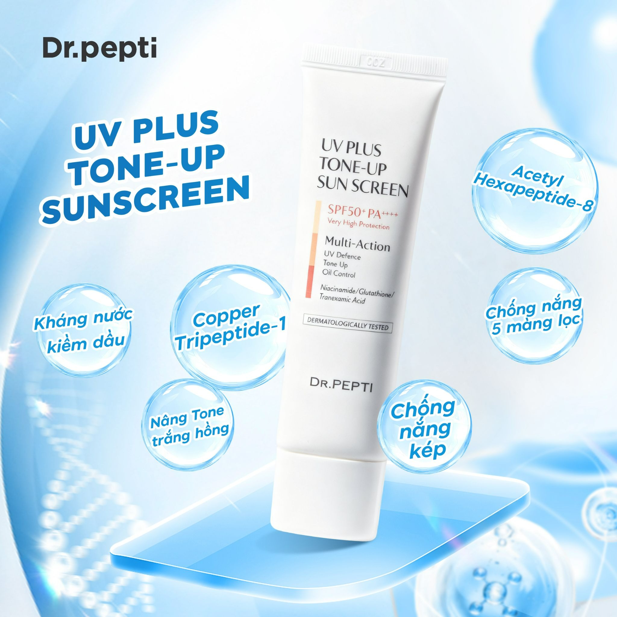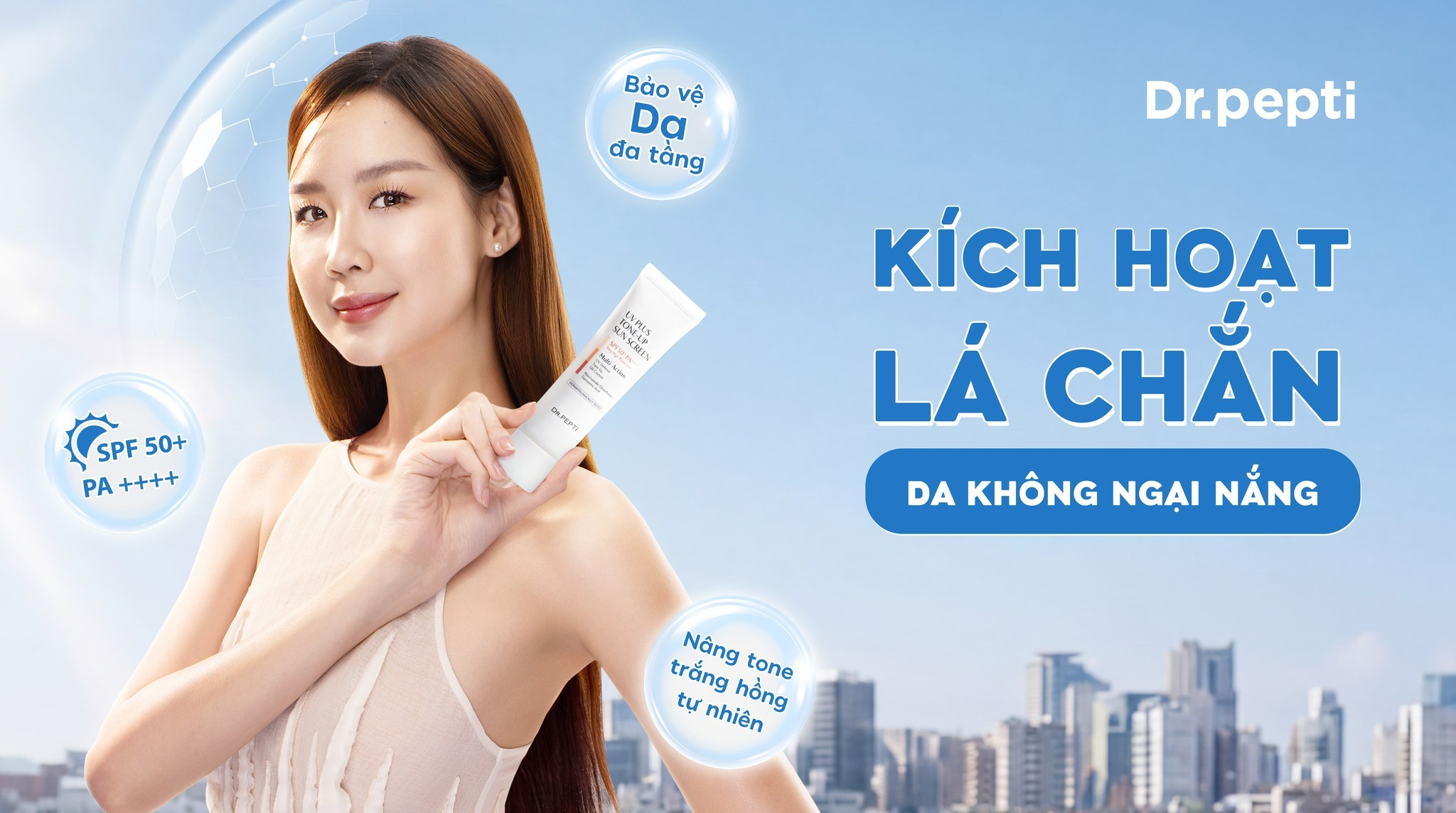 Nếu bạn đang tìm một bước gọn nhẹ trong chu trình skincare, kem chống nắng nâng tone Dr.Pepti chính là lựa chọn “mua 1 được nhiều công dụng”: