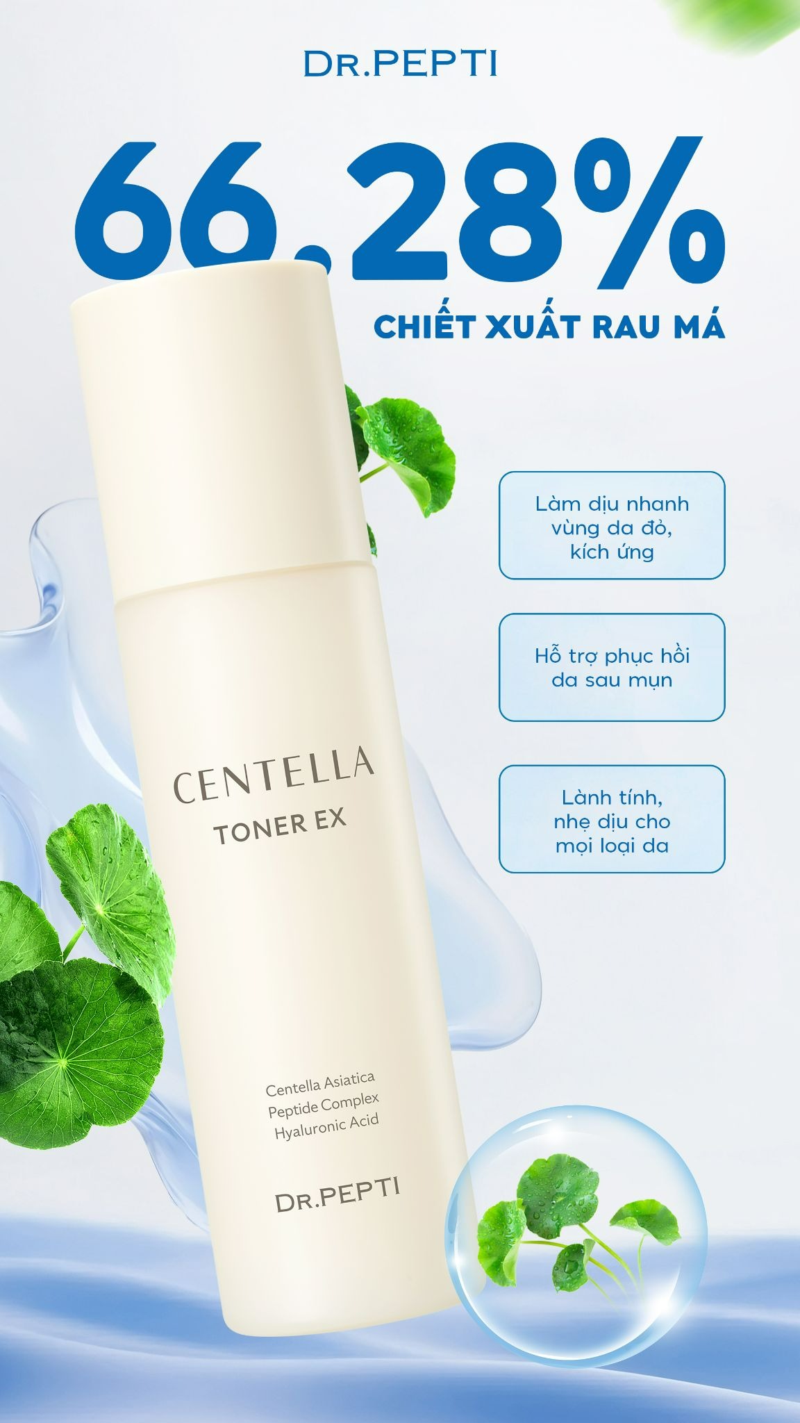 Toner Dr.Pepti không chỉ là bước cấp nước mà còn là bước phục hồi da và xây dựng nền da khỏe cho toàn bộ routine chăm sóc da.