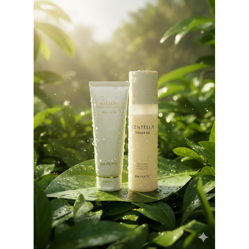 Combo Dr.Pepti Centella Toner EX & Galacto Cleansing Foam – Dịu da sạch sâu