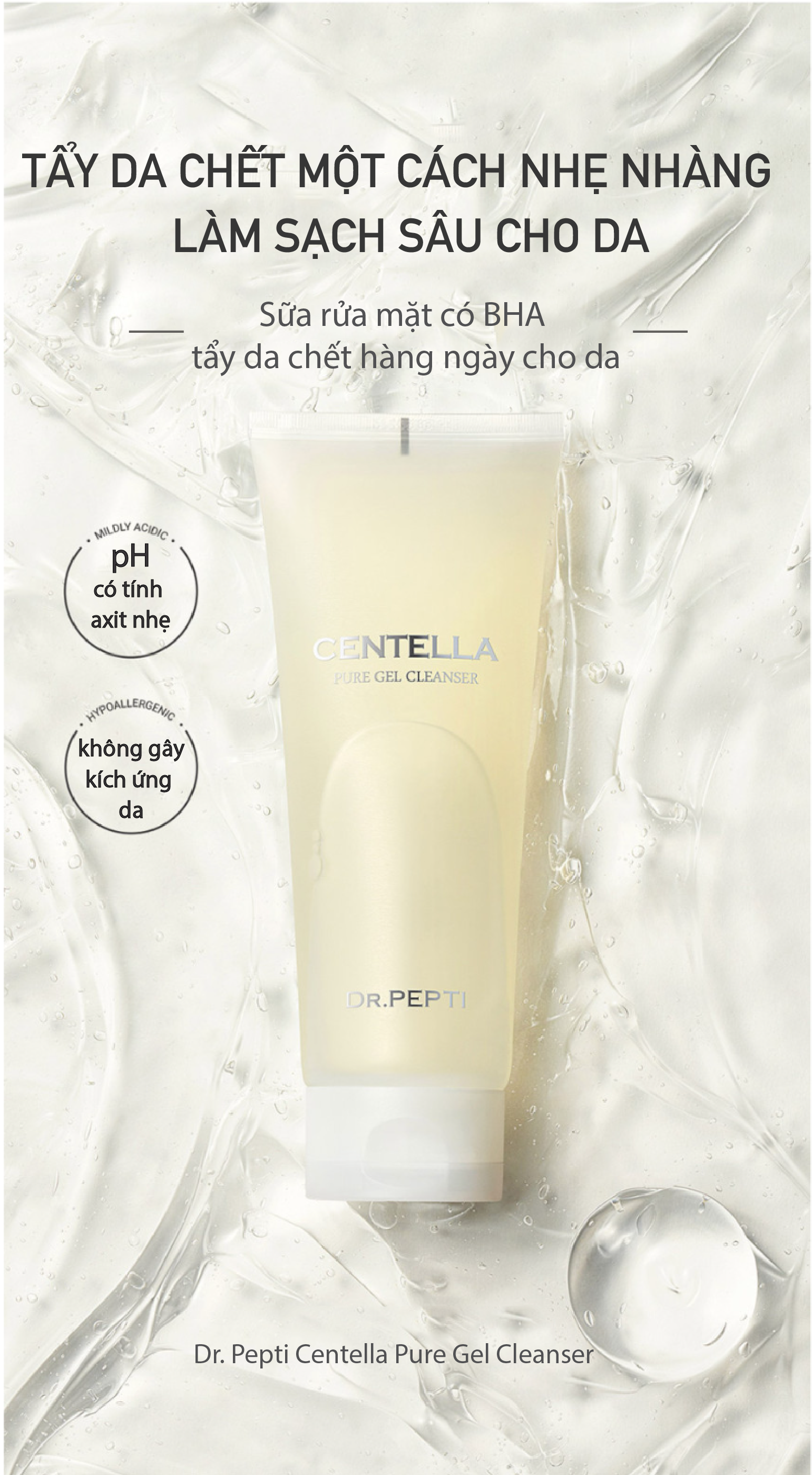 Gel rửa mặt tinh chất rau má làm sạch sâu, trị mụn DR.PEPTI CENTELLA PURE GEL CLEANSER cực lành tính, giúp làm sạch sâu, điều trị mụn, làm dịu và phục hồi da mà không gây khô da.